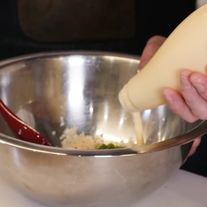 Mantecare bene con una buona quantità di salsa kewpie.