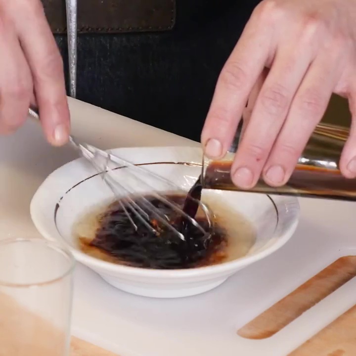 Mescolare 2 g di zenzero, 8 g di zucchero, 40 g di aceto, 40 g di Mirin e 40 g di salsa di soia.