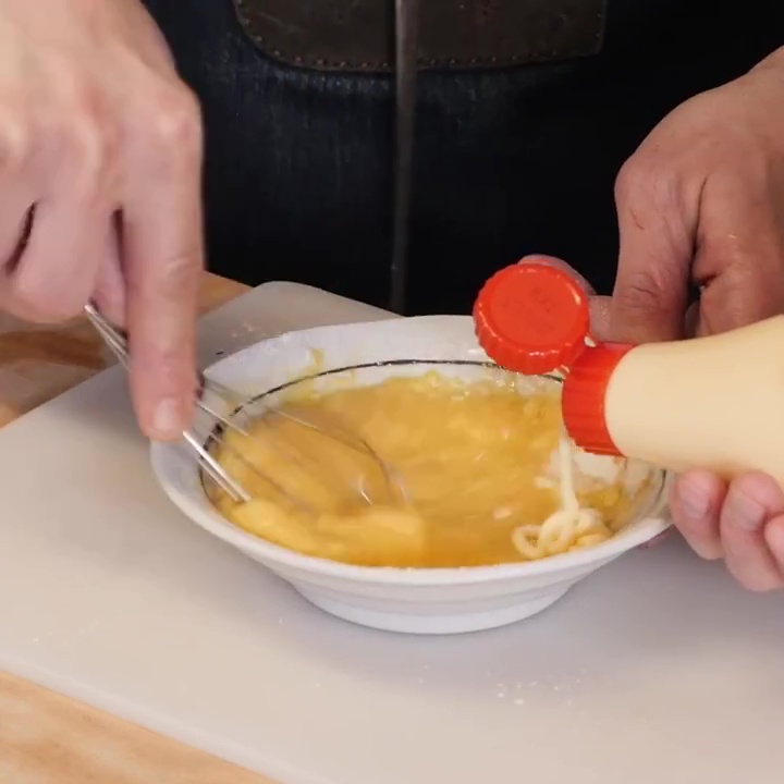 Aggiungere la salsa kewpie in pastella.