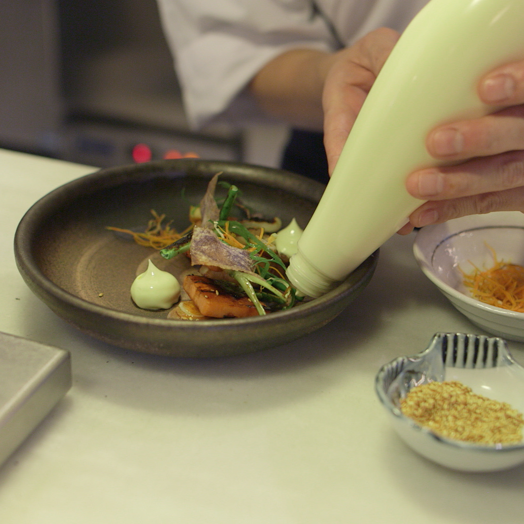 Char-grilled seasonal vegetables with teriyaki sauce and kewpie mayonnaise